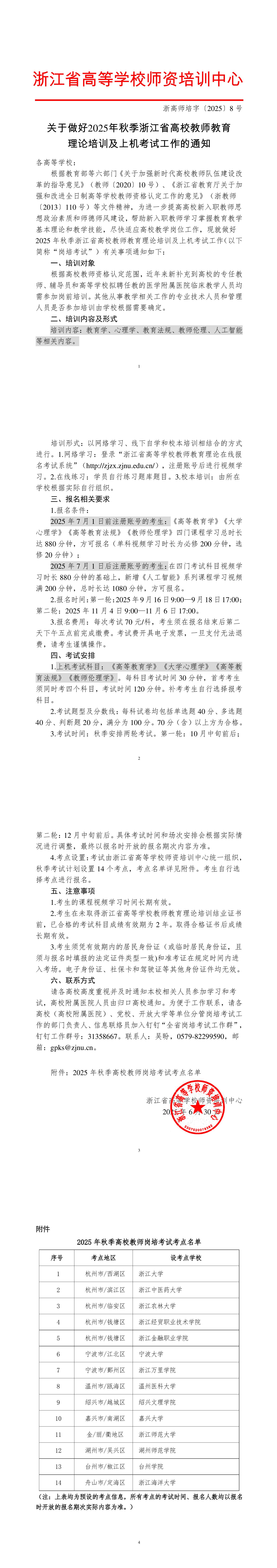 关于做好2025年秋季浙江省高校教师教育理论培训及上机考试工作的通知