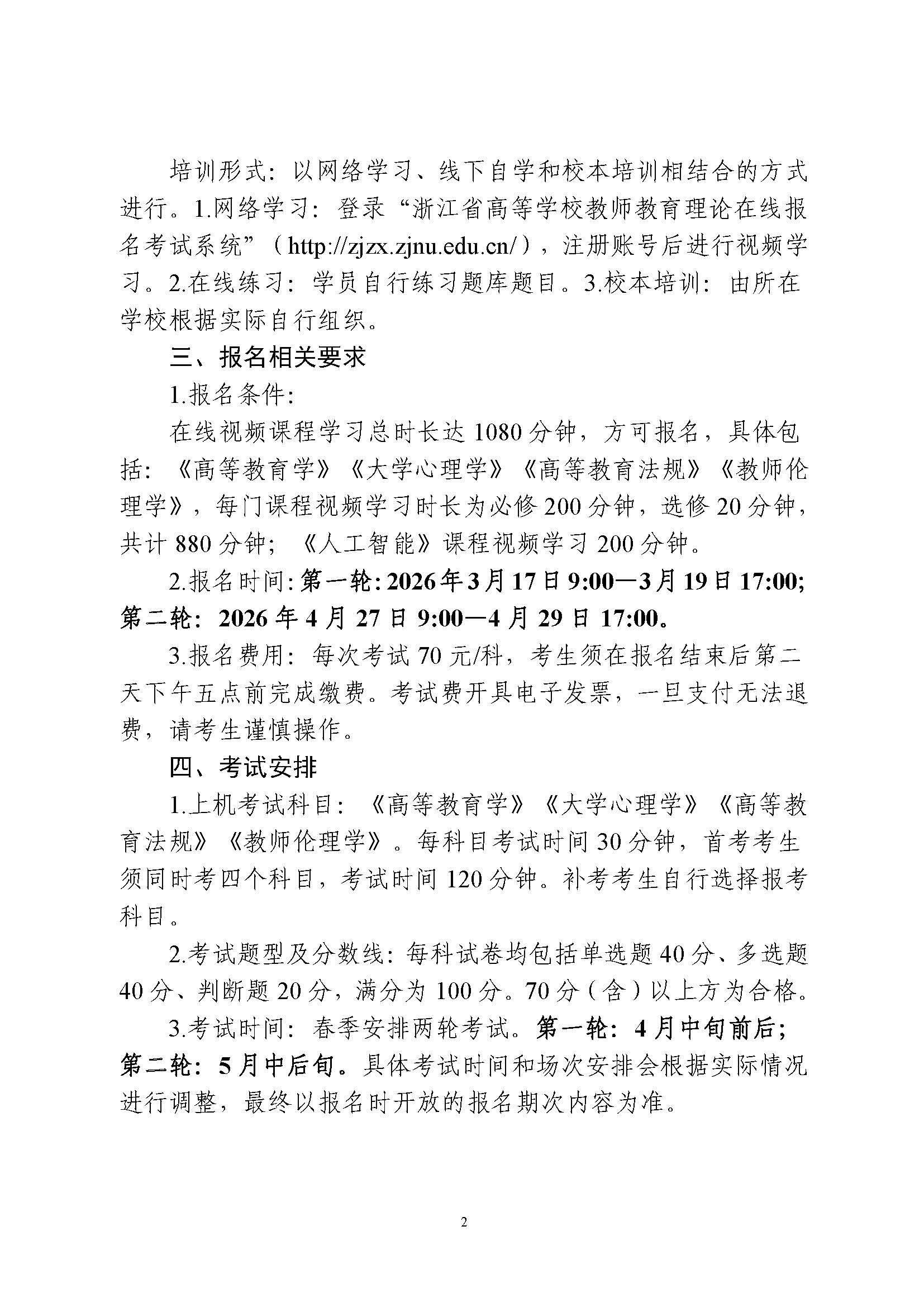 关于做好2026年春季浙江省高校教师教育理论培训及上机考试工作的通知