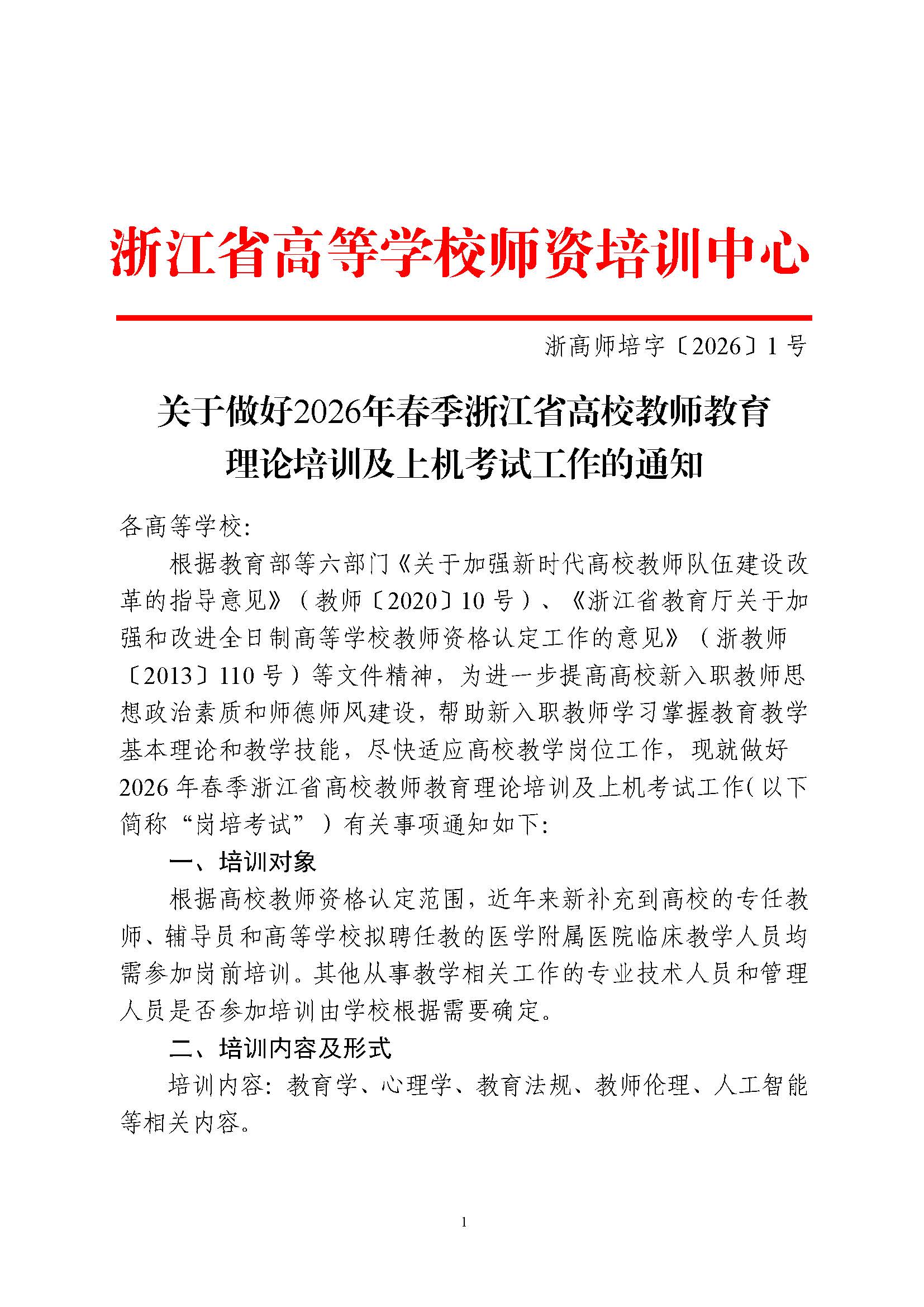 浙高师培字〔2026〕1号关于做好2026年春季浙江省高校教师教育理论培训及上机考试工作的通知.pdf